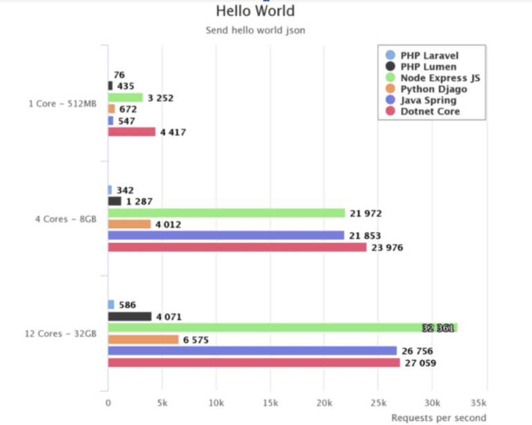 실제 RPS(Requests per second)를 측정한 테스트 수치에 따르면, python 기반의 django는 상당히 낮은 성능을 보여주고 있습니다.